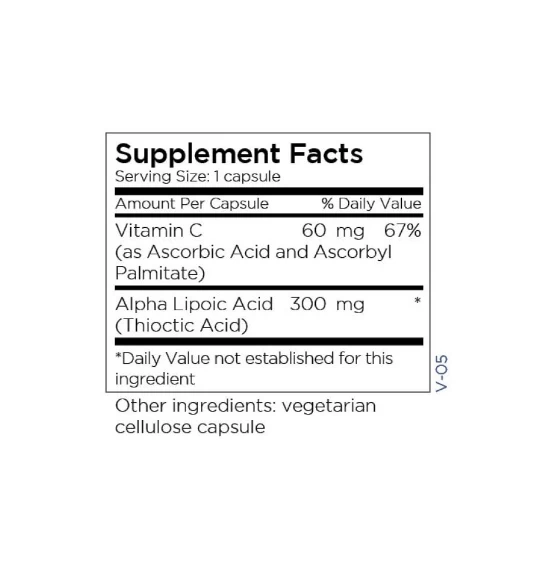 Source Materials: Alpha lipoic acid is made by chemical synthesis. Metabolic Maintenance uses only ALA made in Europe, where it has a long history of use. Ascorbic acid is made from corn sorbitol. Allergens: According to information provided by our suppliers, these capsules are free of the eight major allergens as identified by the Food Allergen Labeling and Consumer Protection Act of 2004 (FALCPA): Wheat (gluten), eggs, milk, soybeans, shellfish, fish, peanuts, tree nuts. Recommendations: One to three (1-3) capsules daily with meals, or as directed by a healthcare professional. Precautions: Pregnant or lactating women and individuals taking prescription medications should consult with a healthcare professional before taking any supplement. ALA may lower blood glucose levels. Those on antidiabetic medications, take only under the supervision of a healthcare professional
