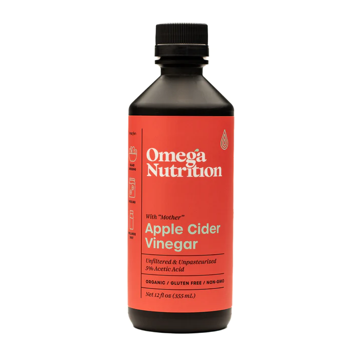 Omega Nutrition’s Apple Cider Vinegar with “Mother”, is made in the USA and is certified organic. It’s also raw, which gives it both more flavor and more nutritional power. This product also contains natural probiotics that are good for the gut. It’s easy to use and extremely versatile.