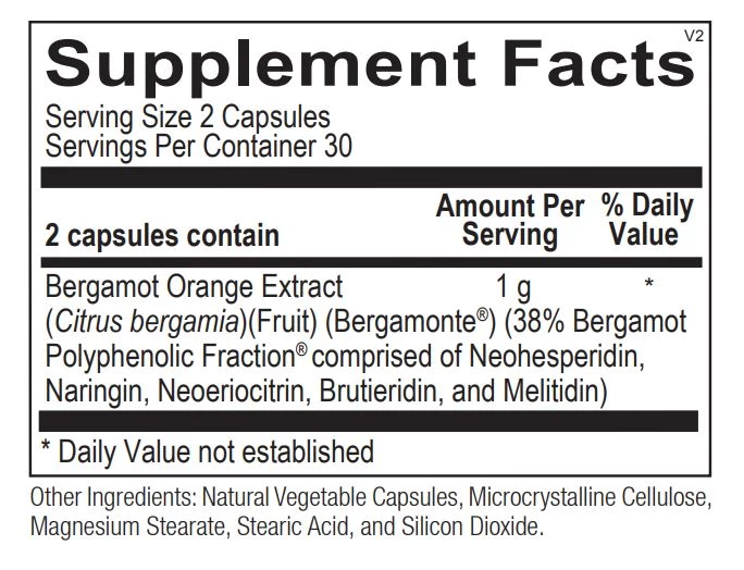 Bergamot’s health benefits derive from its unique profile of phenolic compounds such as, neoeriocitrin, neohesperidin, naringin, rutin, neodesmin, rhoifolin and poncirin. Naringin has been shown to be beneficial in maintaining normal inflammatory balance, while neoeriocitrin and rutin have been found to exhibit a strong capacity to quench free radicals and maintain healthy LDL cholesterol levels. Also, bergamot is rich in brutieridine and melitidine, which have a unique ability to dampen HMG-CoA reductase.