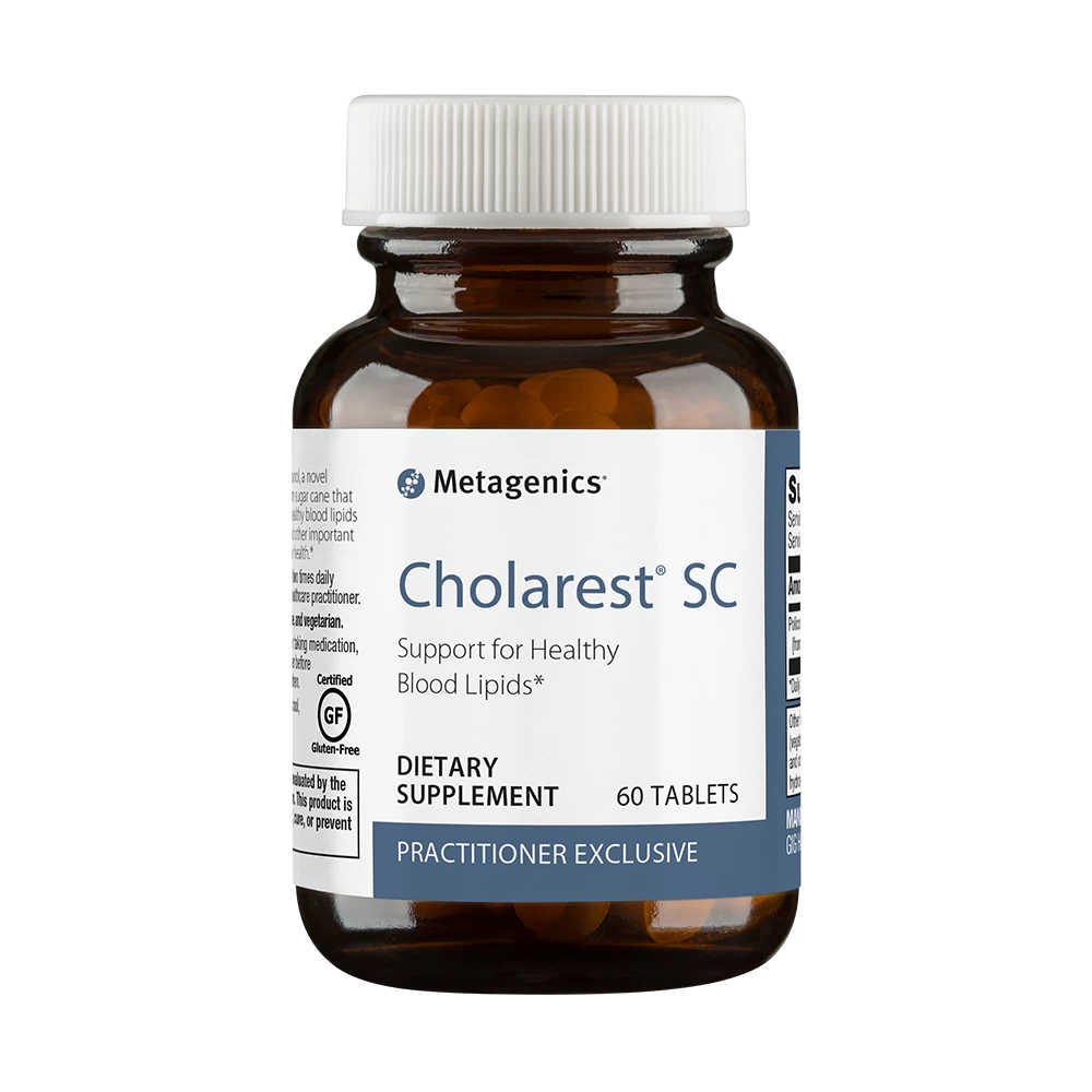Cholarest® SC features policosanol, a novel natural compound purified from sugar cane that delivers powerful support for healthy blood lipids already in the normal range and other important factors related to cardiovascular health. Other Ingredients: Microcrystalline cellulose, stearic acid (vegetable), cellulose, silica, magnesium stearate (vegetable), and coating (hypromellose, medium chain triglycerides, and hydroxypropylcellulose). Directions: Take one tablet one to two times daily with food, or as directed by your healthcare practitioner. This product is non-GMO, gluten-free, and vegetarian. Caution: If pregnant or nursing, or taking medication, consult your healthcare practitioner before use. Keep out of the reach of children. Storage: Keep tightly closed in a cool, dry place. *Daily Value not established.
