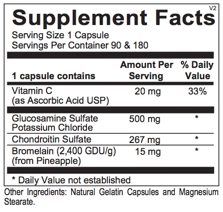 Glucosamine Glucosamine sulfate is a naturally occurring, joint-supporting compound. As a precursor to the primary building blocks of joint tissue (glycolipids, glycoproteins, hyaluronate, and proteoglycans) it is an important starting point for cartilage synthesis. Chondroitin Sulfate As the major glycosaminoglycan associated with articular cartilage, chondroitin sulfate (CS) is designed to draw water into the joint tissues and hydrate them, allowing for compression when pressure is put on the joint and to rehydrate when the pressure is released. The chondroitin sulfate in Chondro-Flx is enzymatically processed to provide consistently small, highly absorbed chondroitin molecules. Bromelain Bromelain is a protease derived from pineapple stems that helps to maintain normal inflammatory balance by affecting both the kinin and fibrin pathways. Bromelain also increases the absorption of chondroitin sulfate.
