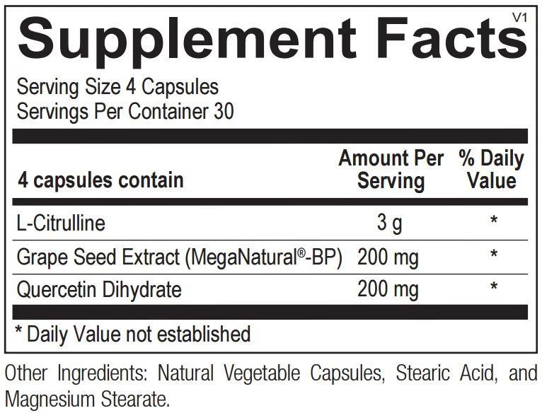 CitraNOX is formulated specifically to maintain healthy blood pressure levels by enhancing endothelial cell and arterial function. Using a combination of high-dose L-citrulline, quercetin and grape seed extract, CitraNOX delivers full-spectrum support to help support inflammatory balance, arterial elasticity, optimal nitric oxide levels, and blood flow. CitraNOX provides a powerful formula for those seeking to optimize several mechanisms of cardiovascular health.