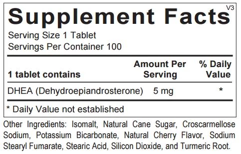 DHEA, dehydroepiandrosterone, is the most abundant adrenal steroid hormone in the body. After it is made by the adrenal glands, it travels into cells throughout the body where it is converted into varrious steroid hormones, including testosterone and estrogen. These hormones regulate fat and mineral metabolism, endocrine and reproductive function, and energy levels. The amount of each hormone that DHEA converts to depends on an individual’s biochemistry, age, and sex. DHEA levels peak around age 25 and then decline steadily. Low levels of DHEA have been associated with poor health. DHEA supplementation has been associated with increased emotional well-being and immune function. Usual dose is 1 or more tablets daily, or as directed by your physician.