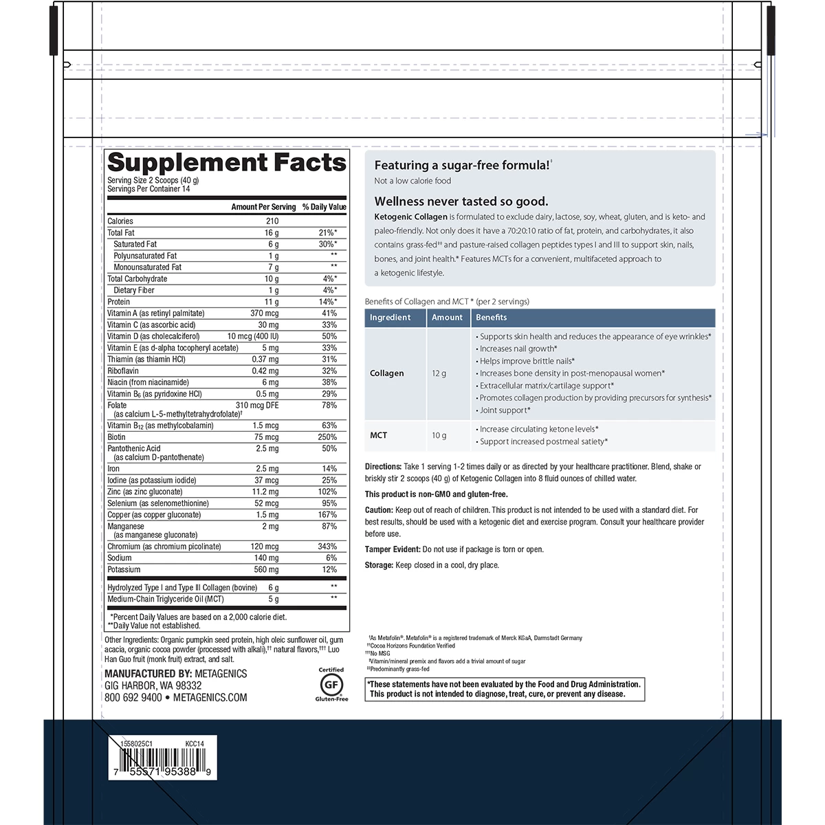 Ketogenic Collagen is formulated to exclude dairy, lactose, soy, wheat, gluten, and is keto- and paleo-friendly. Not only does it have a 70:20:10 ratio of fat, protein, and carbohydrates, it also contains predominantly grass-fed and pasture-raised collagen peptides types I and III to support skin, nails, bones, and joint health.* Features MCTs for a convenient, multifaceted approach to a ketogenic lifestyle.