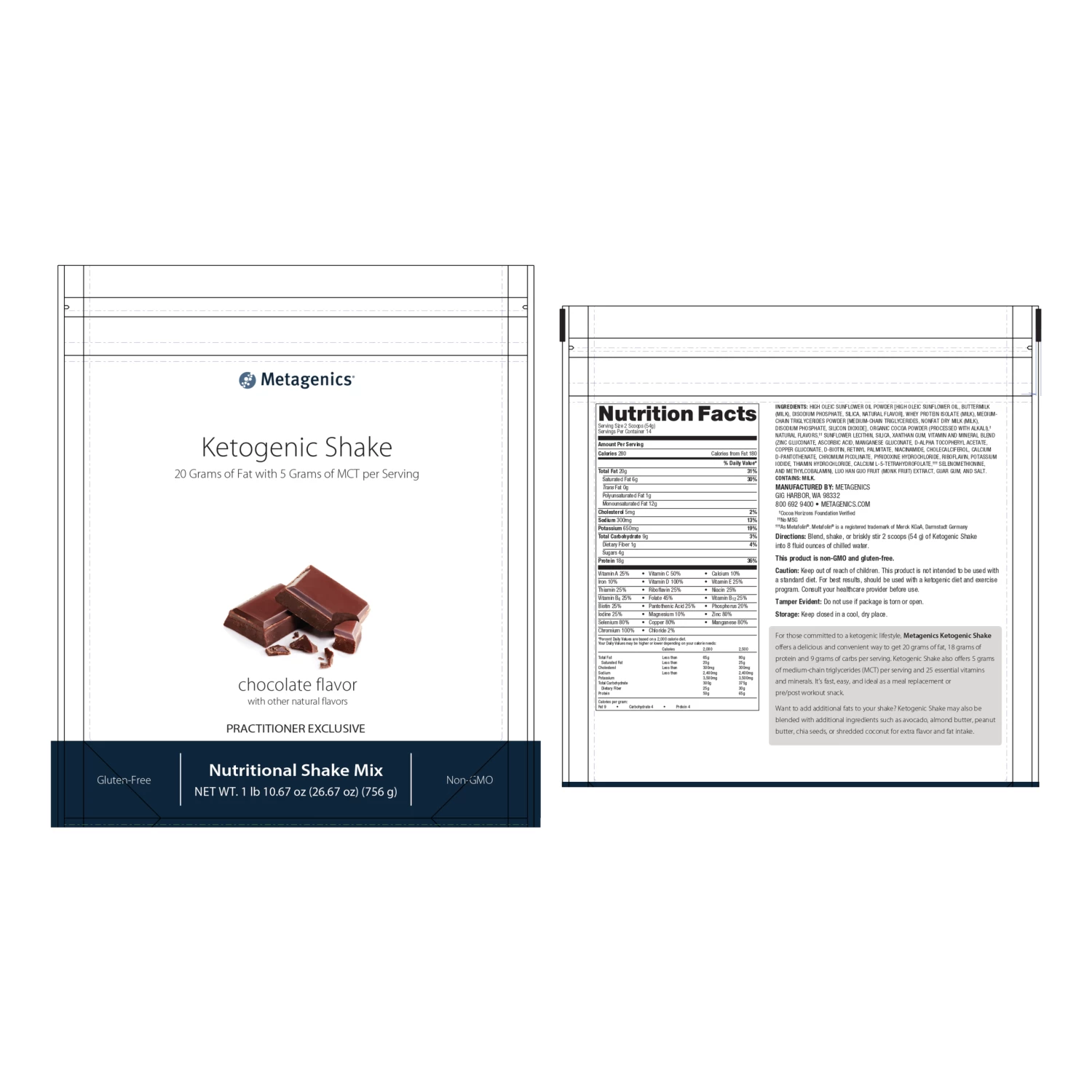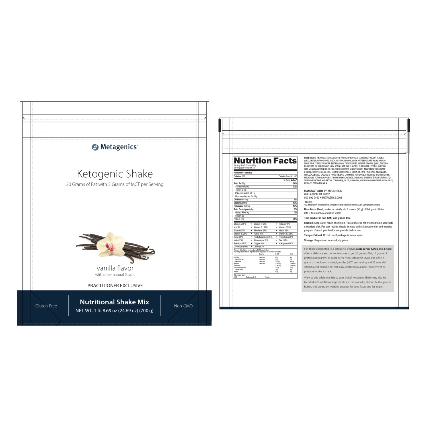 For those committed to a ketogenic lifestyle, Metagenics Ketogenic Shake offers a delicious and convenient way to get 20 grams of fat, 18 grams of protein and 9 grams of carbs per serving. Ketogenic Shake also offers 5 grams of medium-chain triglycerides (MCT) per serving and 25 essential vitamins and minerals. It’s fast, easy, and ideal as a meal replacement or pre/post workout snack.