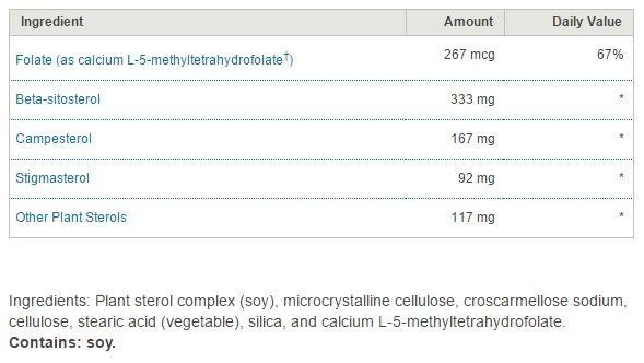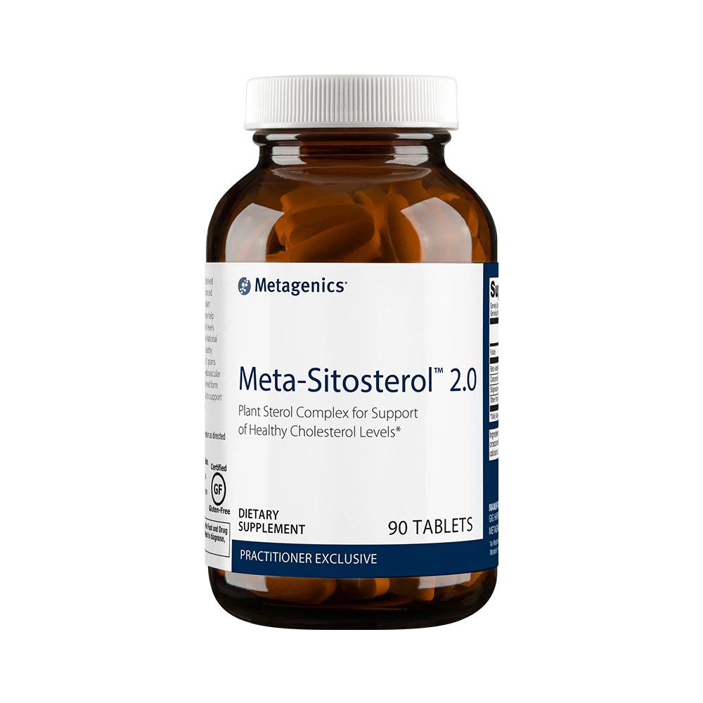 Meta-Sitosterol 2.0 is a naturally derived vegetable preparation featuring plant sterols. * Helps to maintain healthy blood cholesterol levels already within a normal range. * Provides a balanced concentrate of plant sterols for optimal activity and effectiveness. * The National Institutes of Health recommends a healthy diet, along with the consumption of 2 grams of plant sterols daily, to promote cardiovascular health. * Provides L-5-MTHF, a metabolically active form of folate, to support healthy homocysteine metabolism and cardiovascular health. Usual dose is 1 tablet daily, or as recommended by your physician.