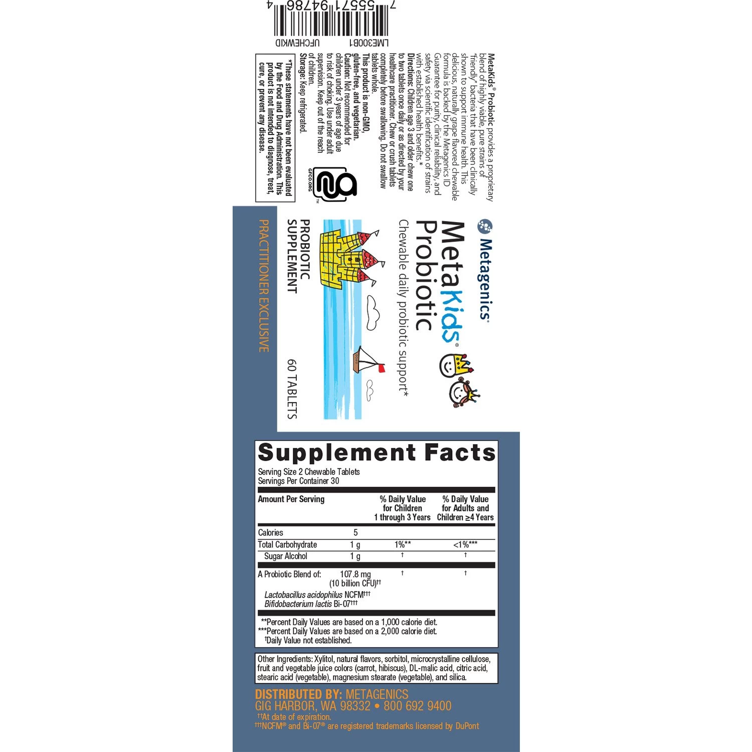 MetaKids™ Probiotic provides a proprietary blend of highly viable, pure strains of “friendly” bacteria that have been clinically shown to support immune health. This delicious, naturally grape flavored chewable formula is backed by the Metagenics ID Guarantee for purity, clinical reliability, and safety via scientific identification of strains with established health benefits.