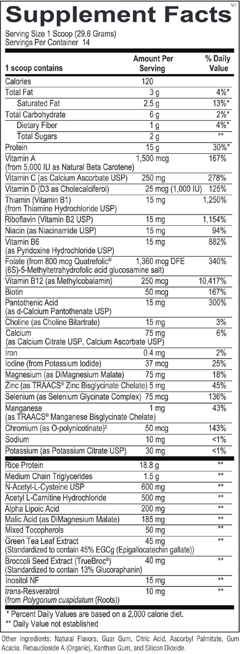 Maintaining healthy blood sugar levels has become a concern for many in the United States and across the globe. The prevalence of refined sugars and carbohydrates and the low presence of fiber in the Western diet have been directly linked to many blood sugar challenges. Glycemic Foundation is designed to to help promote healthy blood sugar levels. With its high fiber (12 g) and high soluble fiber (9 g) content as well as fermentable fibers from inulin and FiberAid, and 10 grams of protein from brown rice, Glycemic Foundation helps manage the spike in blood sugar and insulin levels after a meal, as well as the associated afternoon drops, leading to less fatigue. Glycemic Foundation also provides 1.3 g of omega-3 fatty acids from organic flaxseed and has no added sugar. Lipoic acid is added for its powerful antioxidant support, insulin regulation, and AMPK signaling, to support optimal glucose disposal and weight management. Chromium is added to support GTF (glucose tolerance factor) production, critical for cellular uptake of glucose. Vanadyl sulfate is also included for its support of more optimal insulin sensitization. Suggested Use: For the first three days of use, add 1 scoop (15.75 g) to at least 8 oz. of water or the beverage of your choice, stir and drink between or before meals one to three times daily. Increase dose to 2 scoops (31.5 g) after three days, or as recommended by your health care professional.