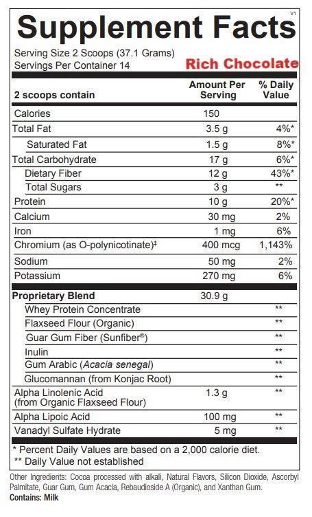 Maintaining healthy blood sugar levels has become a concern for many in the United States and across the globe. The prevalence of refined sugars and carbohydrates and the low presence of fiber in the Western diet have been directly linked to many blood sugar challenges. Glycemic Foundation is designed to to help promote healthy blood sugar levels. With its high fiber (12 g) and high soluble fiber (9 g) content as well as fermentable fibers from inulin and FiberAid, and 10 grams of protein from brown rice, Glycemic Foundation helps manage the spike in blood sugar and insulin levels after a meal, as well as the associated afternoon drops, leading to less fatigue. Glycemic Foundation also provides 1.3 g of omega-3 fatty acids from organic flaxseed and has no added sugar. Lipoic acid is added for its powerful antioxidant support, insulin regulation, and AMPK signaling, to support optimal glucose disposal and weight management. Chromium is added to support GTF (glucose tolerance factor) production, critical for cellular uptake of glucose. Vanadyl sulfate is also included for its support of more optimal insulin sensitization. Suggested Use: For the first three days of use, add 1 scoop (15.75 g) to at least 8 oz. of water or the beverage of your choice, stir and drink between or before meals one to three times daily. Increase dose to 2 scoops (31.5 g) after three days, or as recommended by your health care professional.