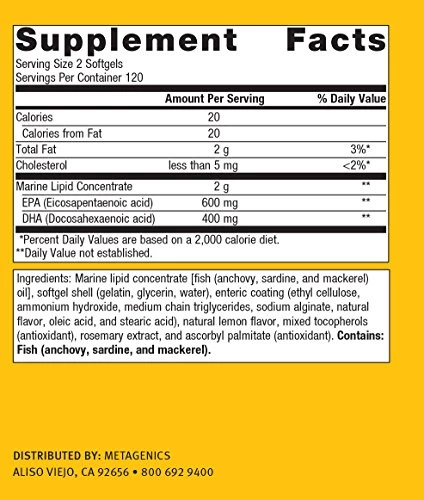 Mega Omega Enteric Coated is a concentrated source of health-promoting, antioxidant stabilized omega-3 essential fatty acids from cold water fish. Its enteric coating prevents release before reaching the small intestine. This formula supports healthy musculoskeletal, cardiovascular, nervous system, and immune function.