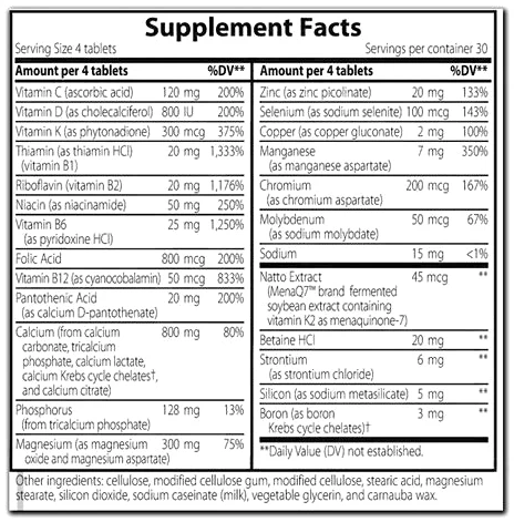 Simply put, more forms of calcium ensure more complete availability in the body. Each calcium salt—that is, each calcium attached to a different mineral—offers differing quantities of elemental calcium. Elemental calcium is the “bottom line” amount of calcium you absorb from food or a supplement. And while some calcium/mineral combinations have more elemental calcium than others, they’re not always easy to absorb. For example, calcium lactate is about 32 percent absorbed while calcium citrate is approximately 30 percent absorbed. Tricalcium phosphate is an important addition to the formula because is the most prevalent form of calcium in human bone.