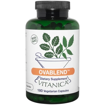 Ovablend (formerly known as PCOS Blend) This is a nutitional support product for those with polycystic ovary syndrome, or PCOS. Ingredients: Ingredients per 3 capsules:Vitamin C (as calcium ascorbate, buffered) 1000 mg Calcium (as calcium ascorbate) 120 mg Vitamin D2 (as ergocalciferol) 100 IU Chromium (as polynicotinate) 200 mcg Nettles root (Urtica dioica) 300 mg Green tea extract (Camellia sinensis) 250 mg (90% polyphenols, 80% catechins, 45% EGCG) Saw Palmetto (45% fatty acids and sterols) (Serenoa repens) 200 mg Sarsaparilla (Smilax medica) 130 mg Bloodroot (Sanguinaria canadensis) 130 mg. Other Ingredients:Vegetable cellulose and water. Avoid this product if pregnant or being treated for high blood pressure. Directions: Three (3) to six (6) capsules daily, or as recommended by your physician.