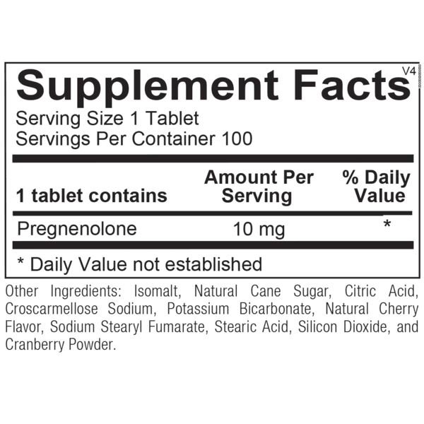 Pregnenolone is a pro-hormone that is synthesized in the brain and adrenals, but also in the liver, skin, brain, testicles, ovaries and retina. As a biochemical precursor to DHEA and progesterone, pregnenolone helps to keep a normal balance between these hormones in the body and as a result, helps to modulate the cortisol-driven stress response system, support nerve cell growth and modulate mood. Specifically, when a high-stress lifestyle pushes the stress response system into overdrive, the rise in cortisol can ultimately cause the depletion of pregnenolone and a reduced availability of DHEA and progesterone. This phenomenon is known as “pregnenolone steal,” and supplementing pregnenolone can help to replace this needed precursor. Pregnenolone plays a key role in hormonal balance as a key precursor to cortisol, DHEA and progesterone, and helps to maintain balance in the body’s stress response system. In addition, pregnenolone has been shown to support a balanced mood and promote cognitive health by modulating the transmission of messages between neurons, influencing learning and memory processes. Since there is strong evidence that pregnenolone levels diminish with advancing age, restoring these levels may also help support overall brain function and sense of well-being. Each capsule of the Pregneolone formula includes 10 mg of pregnenolone in a scored, quick-dissolve tablet, allowing for incremental dosing as needed. Suggested Use: 1 or more tablets per day or as recommended by your health care professional