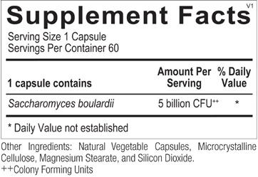 Source Materials: Derived via yeast fermentation. Vegan Statement: Saccharomyces Boulardii is considered a fungus which makes it vegan friendly. Contains no ingredients derived from animal sources. Suitable for vegans. Allergens: According to information provided by our suppliers, these capsules are free of the eight major allergens as identified by the Food Allergen Labeling and Consumer Protection Act of 2004 (FALCPA): Wheat (gluten), eggs, milk, soybeans, shellfish, fish, peanuts, tree nuts. Recommendations: 1 capsule per day or as directed by a healthcare professional. Precautions: Pregnant or lactating women and individuals taking prescription medications should consult with a healthcare professional before taking any supplement. Probiotics may be contraindicated in those with compromised immune systems or in those on immunosuppressive medication.