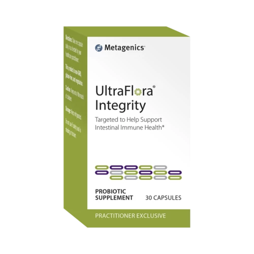 UltraFlora® Integrity features 100 million CFU of patented probiotic strain Lactobacillus salivarius UCC118, which preclinical studies suggest may influence tight junctions between intestinal cells and may beneficially influence immune cell signaling processes.* Backed by the Metagenics ID Guarantee for purity, clinical reliability, and predicted safety via scientific identification of strains with established health benefits.
