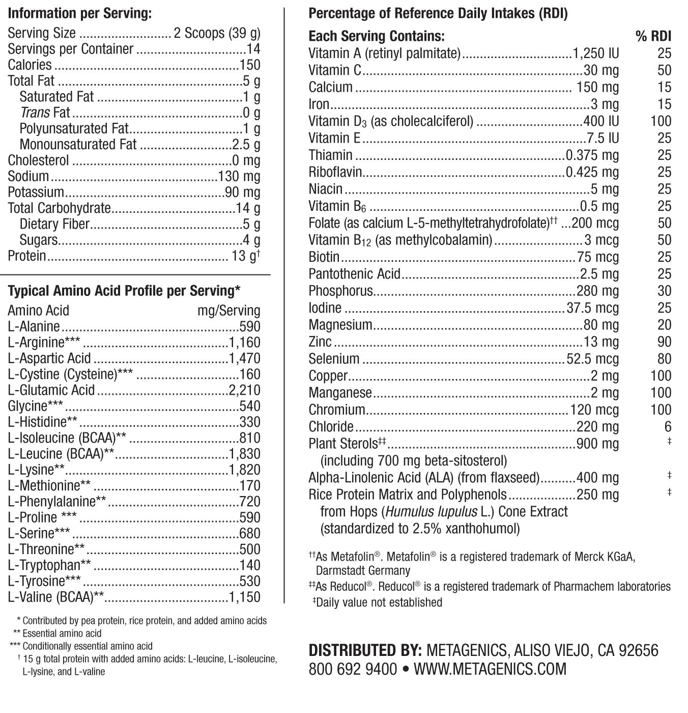 - Proprietary formula features SKRMs—reduced iso-alpha acids (RIAA) and acacia—clinically shown in a preliminary study at the Metagenics Functional Medicine Research Center® to improve fasting insulin and lipid parameters.