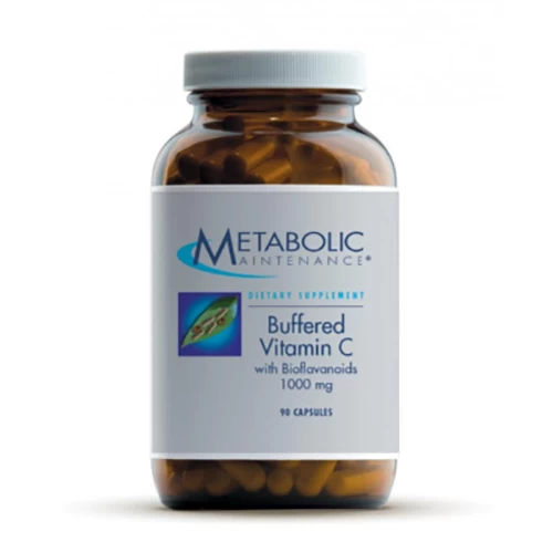 What is Buffered Vitamin C with Bioflavonoids? Designed specifically for individuals sensitive to acidic foods and beverages, Buffered Vitamin C 500 mg and 1000 mg with Bioflavonoids is a combination of two mineral ascorbates (potassium and magnesium) that supply the essential antioxidant vitamin C without increasing stomach acidity. Vitamin C is a potent water-soluble antioxidant and essential in the human diet as it cannot be synthesized within the body [1]. Vitamin C is an electron donor, and this property is closely related to all of its known functions [1]. Vitamin C is required for the production and maintenance of collagen. It has anti-inflammatory properties, supports the immune system, contributes to the healthy production of neurotransmitters, and aids in the absorption of iron. Citrus bioflavonoids have been added for increased bioavailability. How does Buffered Vitamin C with Bioflavonoids Work? The stability and formation of collagen, the major protein from which connective tissue, cartilage, bone, skin, tendon, and tooth dentin is made, requires a vitamin C-mediated process [2]. A lack of vitamin C, a required cofactor for prolyl hydroxylase, impairs the development of collagen and renders humans “scorbutic” [2]. The human phenotype of vitamin C deficiency, “scurvy” classically involves fragility of blood vessels [2]. In addition to its antiscorbutic actions, vitamin C has potent antioxidant properties. Antioxidants protect and aid in the repair of cellular damage caused by free radicals/reactive oxygen species. In response to physical trauma, vitamin C exerts a protective effect on neutrophil-mediated cell injury by scavenging reactive oxygen metabolites [3]. Vitamin C concentrations in plasma and immune cells rapidly decline during infections and stress signifying its use is upregulated for immune support [4]. Multiple clinical studies have shown that supplementation of vitamin C improves components of the human immune system [4]. Vitamin C also plays a role in the maintenance of healthy circulation and has anti-inflammatory effects [2]. Of all the body’s organs, the adrenal glands accumulate the highest levels of vitamin C [5]. Animal models have shown the role of vitamin C in these tissues is crucial to survival [5]. Ascorbic acid is a cofactor required for the biosynthesis of and the catecholamine neurotransmitters, epinephrine, norepinephrine, and dopamine, as well as adrenal steroidogenesis [5]. For those consuming plant-based diets (no animal tissue), vitamin C is the only known dietary constituent that can significantly increase the absorption of nonheme iron [6]. It is important to note, the stimulating influence of ascorbic acid on iron absorption has been demonstrated to be most pronounced when ascorbic acid is consumed with food [6]. Flavonoids work synergistically with vitamin C, as ascorbates are more readily absorbed in combination with flavonoids than they are when taken alone [7]. Flavonoids also have antioxidant and anti-inflammatory properties of their own. What are the Suggested Uses for Buffered Vitamin C with Bioflavonoids?