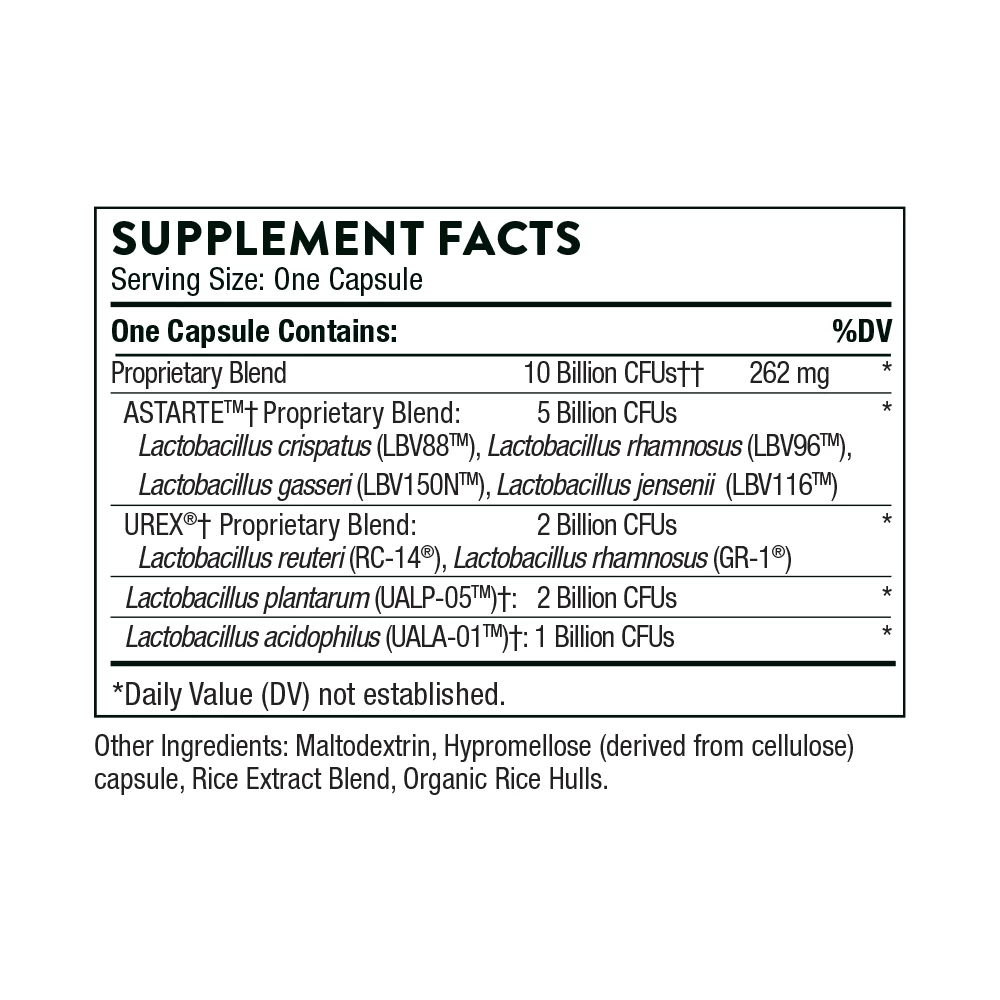 | ASTARTE Proprietary Blend, UREX Proprietary Blend, Lactobacillus plantarum Lactobacillus acidophilus | 10000000000cfus |