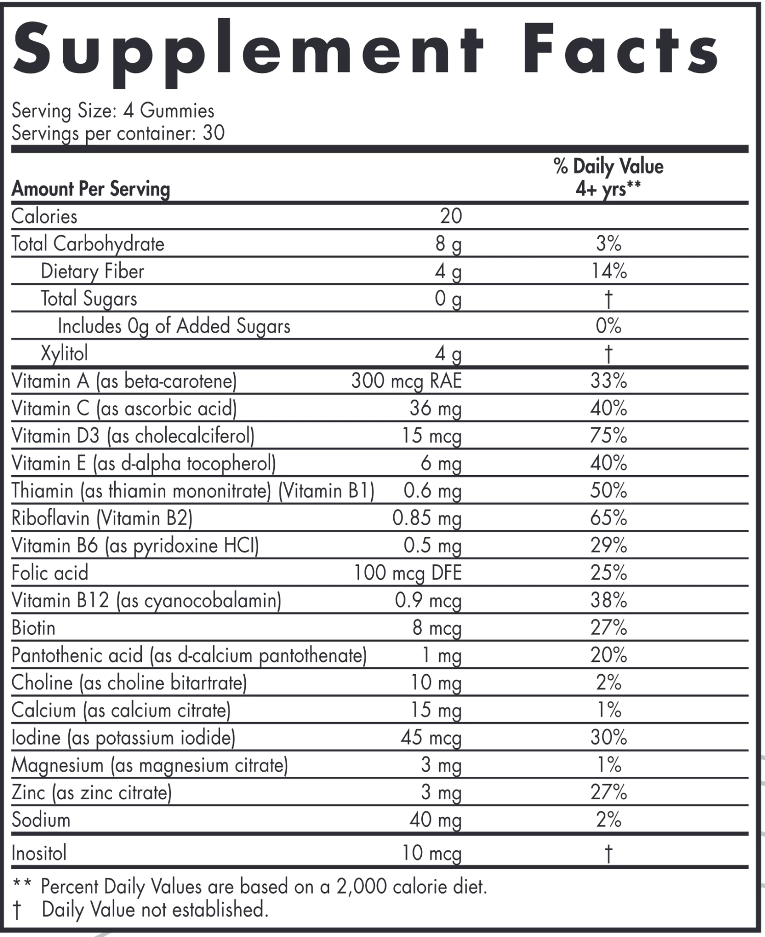 For 4 years and over, four gummies daily, with food, or as directed by your health care professional or pharmacist. Please ensure child chews each gummy thoroughly.